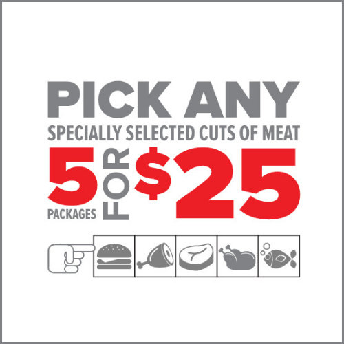 This week at Quality Foods: Mix & match any 5 select meat packs for just $25!
