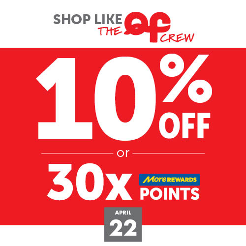 This Wednesday, April 22, enjoy Shop Like the QF Crew perks—10% off or 30X More Rewards Points!